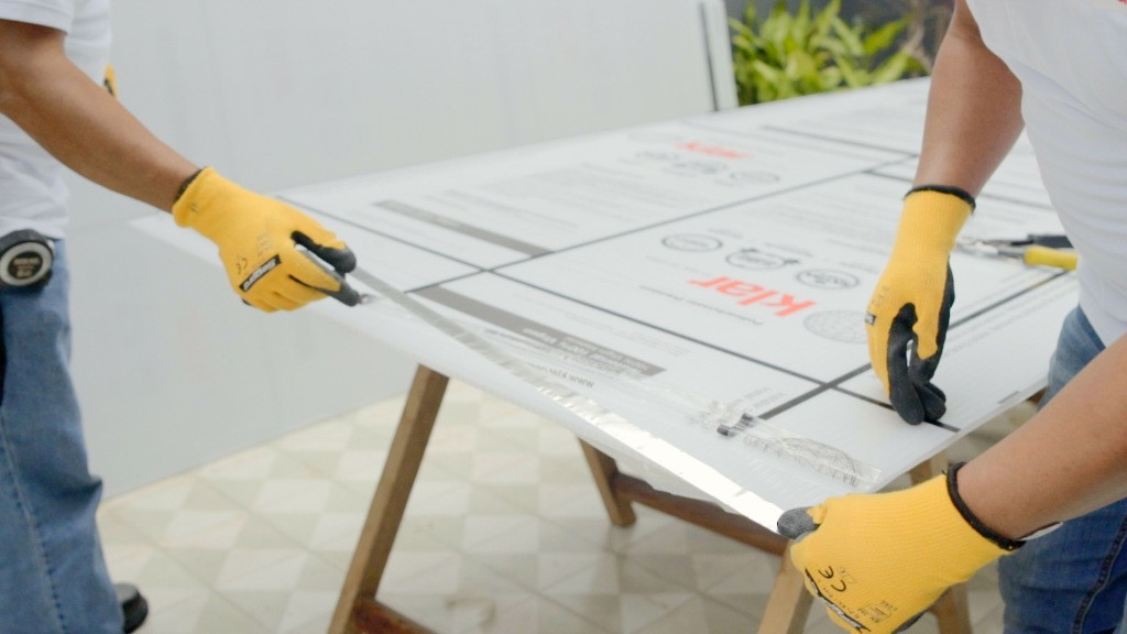 La cinta de aluminio Klar está elaborada con un material de tela resistente con un revestimiento superior de plástico por un lado y recubierta con un adhesivo duradero por el otro.