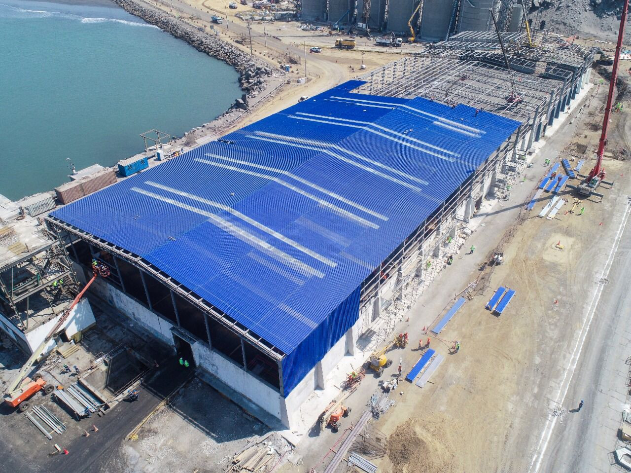 Se necesitaba construir cuatro grandes almacenes para guardar fertilizantes, azúcar, soya y minerales. Para esto, el material requerido debía ser de larga duración y 100% anticorrosivo.