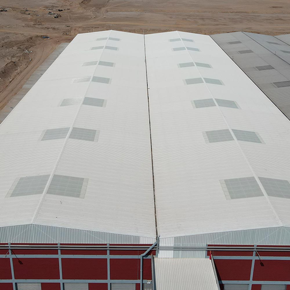 El reto Klar estaba centrado en brindar una solucion libre de corrosion para sus almacenes, tanto para techos como cerramientos y accesorios de remat logrando un sistema 100% anticorrosivo.