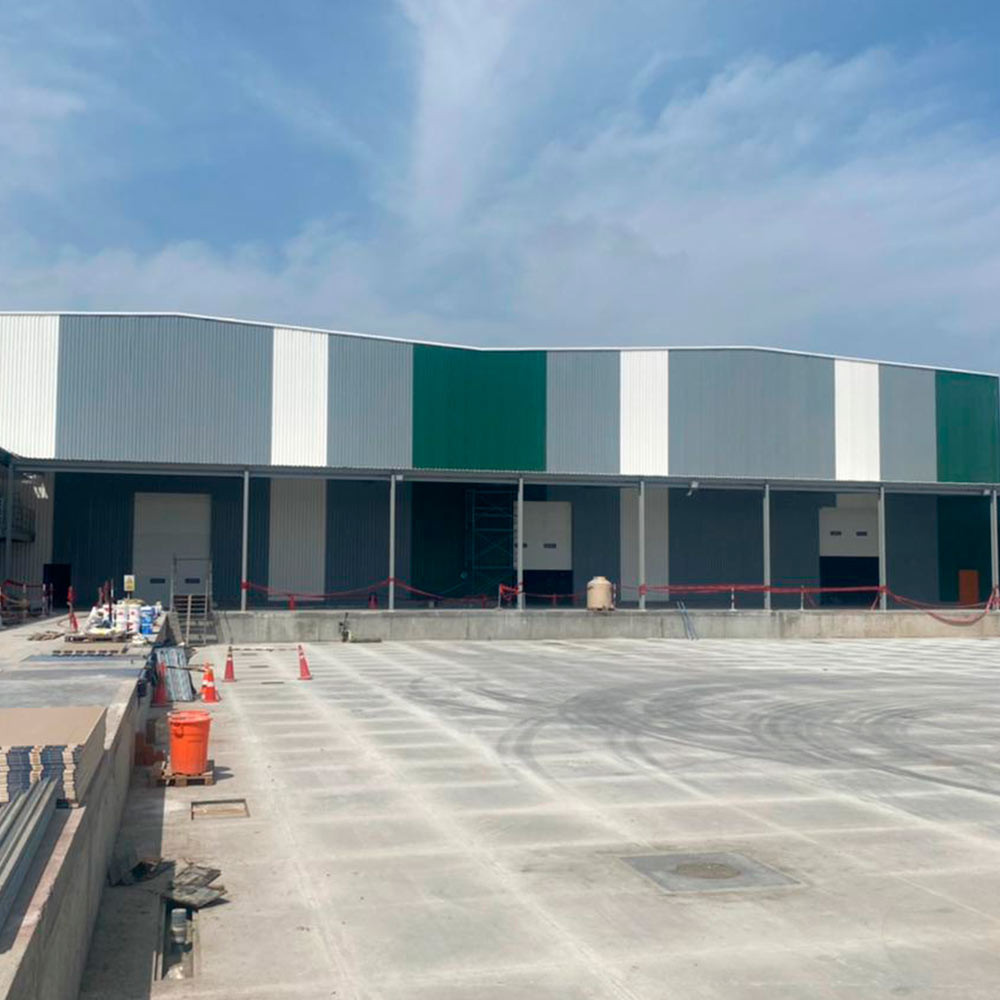 Para el caso del almacén de Dijisa, se optó por utilizar para la cubierta del techo el perfil TK6S de color blanco en 3mm de espesor. Mientras que, para el cerramiento del almacén el cliente solicitó una modulación con distintos colores de nuestra línea de UPVC, teniendo así grandes beneficios frente a la corrosión y calor de la zona.